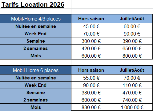 Les tarifs Hors saison peuvent variés en fonction des vacances scolaires.